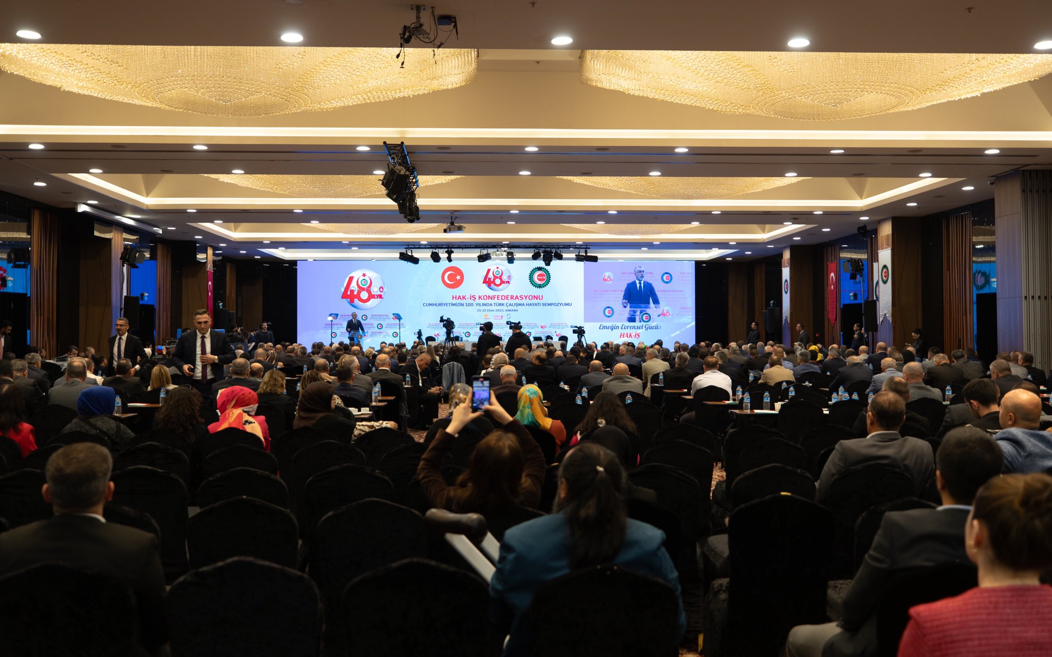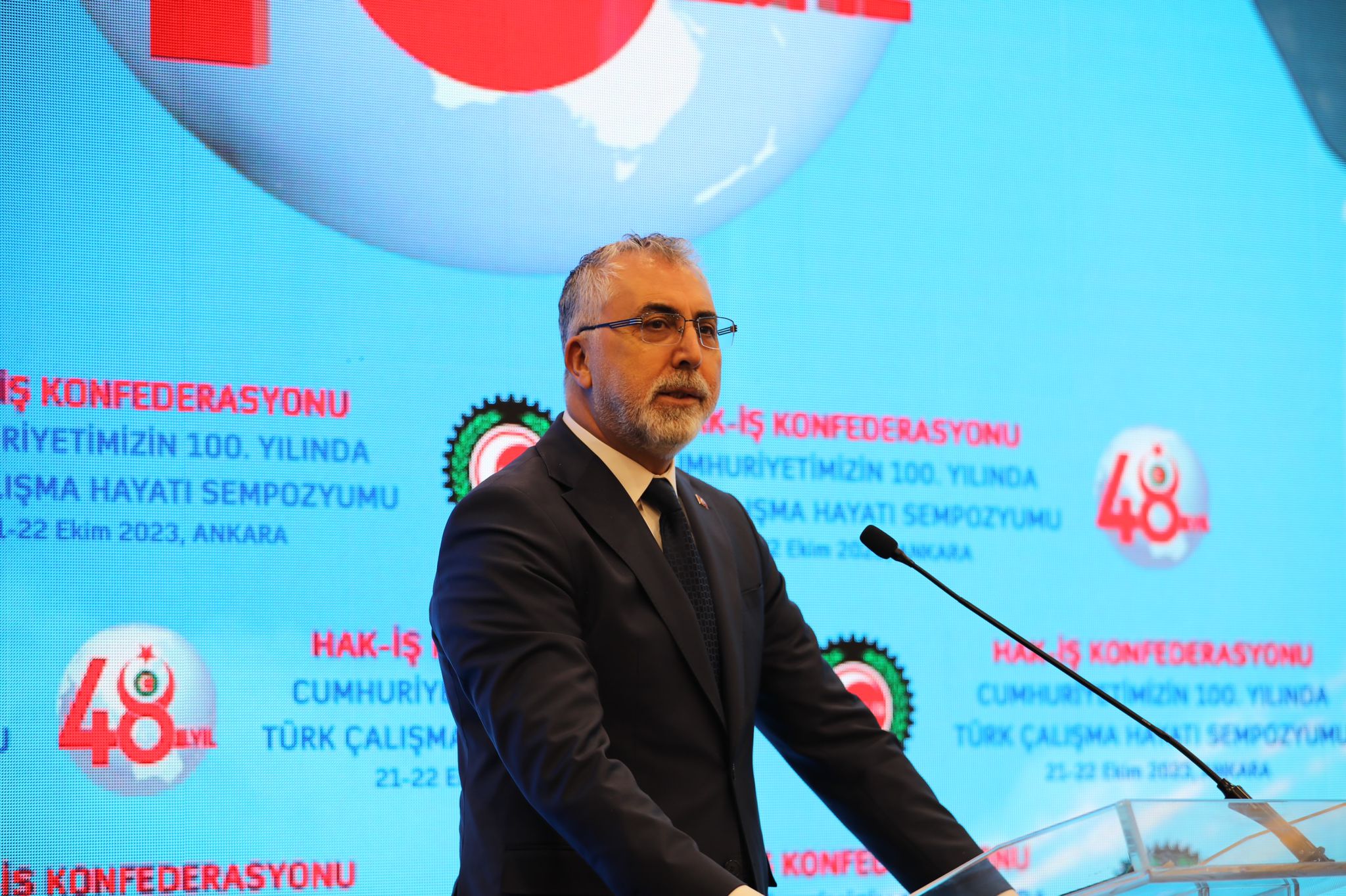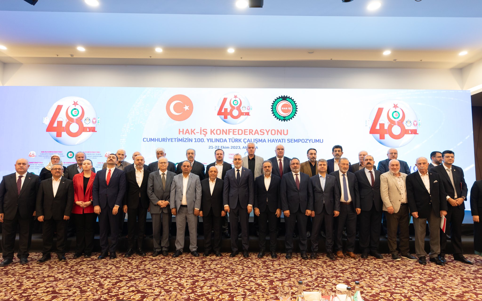 Çalışma ve Sosyal Güvenlik Bakanı Prof. Dr. Vedat Işıkhan, Hak İşçi Sendikaları Konfederasyonu’nun (Hak-İş) 48. Kuruluş Yıldönümü Etkinlikleri kapsamında düzenlediği “Cumhuriyetimizin 100. Yılında Türk Çalışma Hayatı Sempozyumu” na iştirak etti.