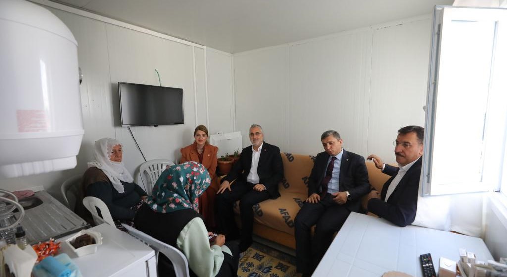 Teknokent Geçici Konaklama Merkezi”ni de ziyaret eden Bakan Işıkhan, burada depremzedelerle bir araya geldi. Depremzedeleri konteynerlerinde ziyaret eden Bakan Işıkhan, burada vatandaşlarla sohbet etti.