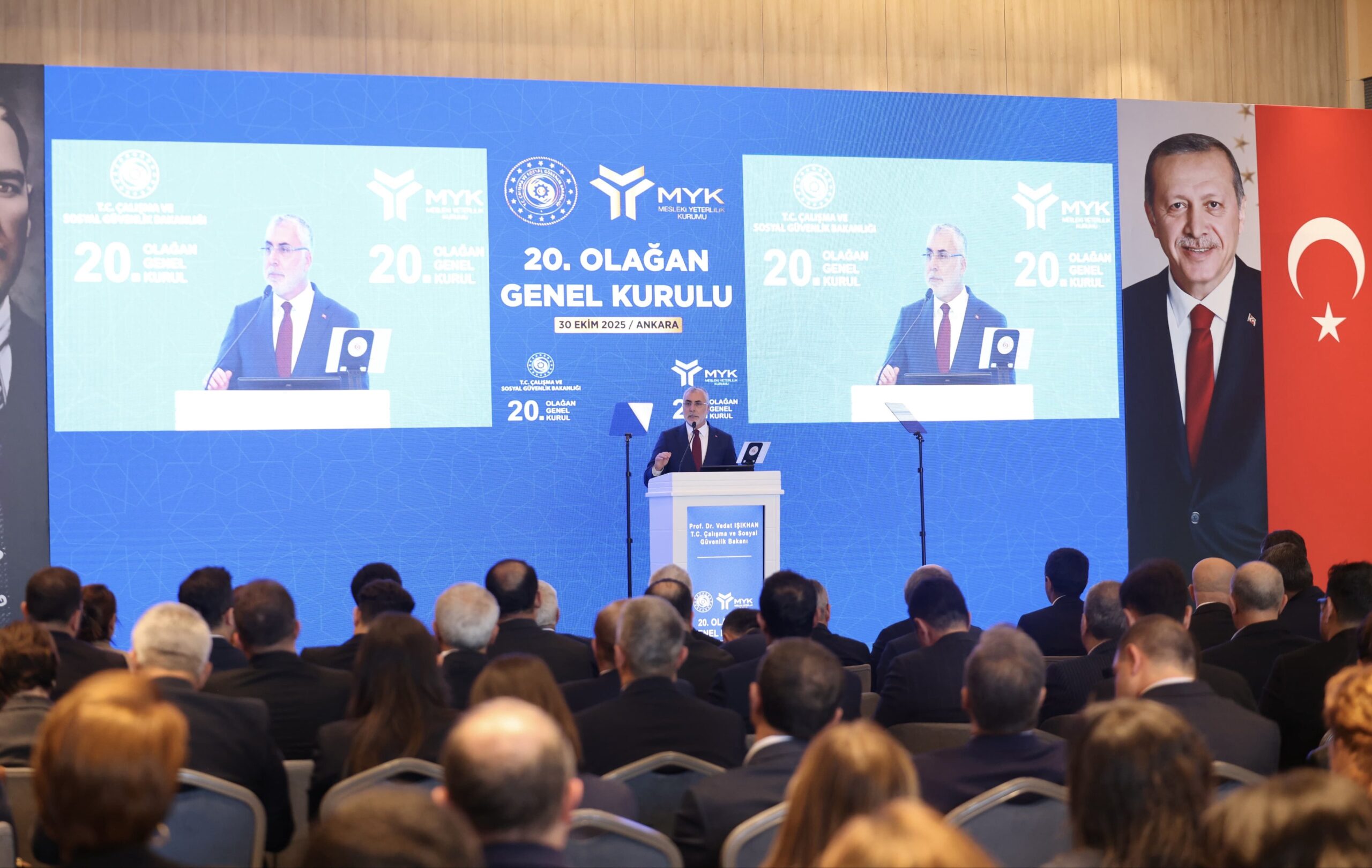 Çalışma ve Sosyal Güvenlik Bakanı Prof. Dr. Vedat Işıkhan, Çalışma ve Sosyal Güvenlik Bakanlığı Mesleki Yeterlilik Kurumu (MYK) 20. Olağan Genel Kurulu’na katıldı.