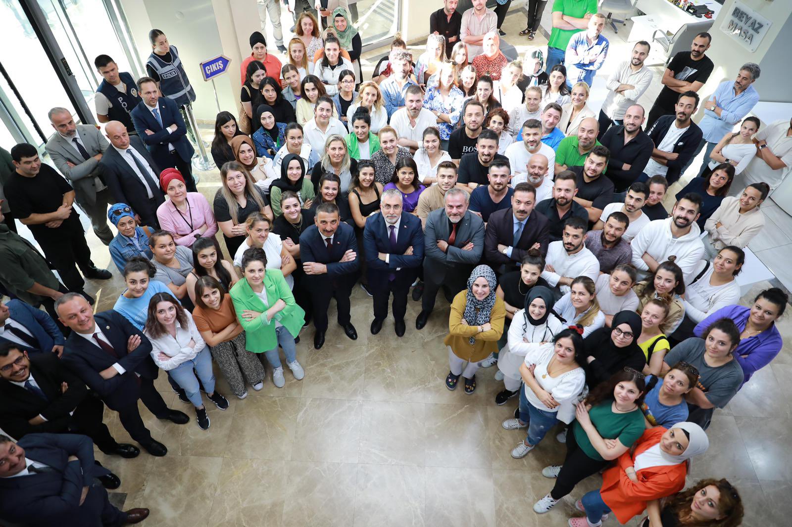 Ardından Bakan Işıkhan, 10 ilde lokasyonu bulunan, Bakanlık, SGK ve İŞKUR tarafından sunulan hizmetlerle ilgili bilgilendirme yapan ve çözüm üreten İletişim Merkezi ALO 170 personeliyle Zonguldak lokasyonunda bir araya geldi.
