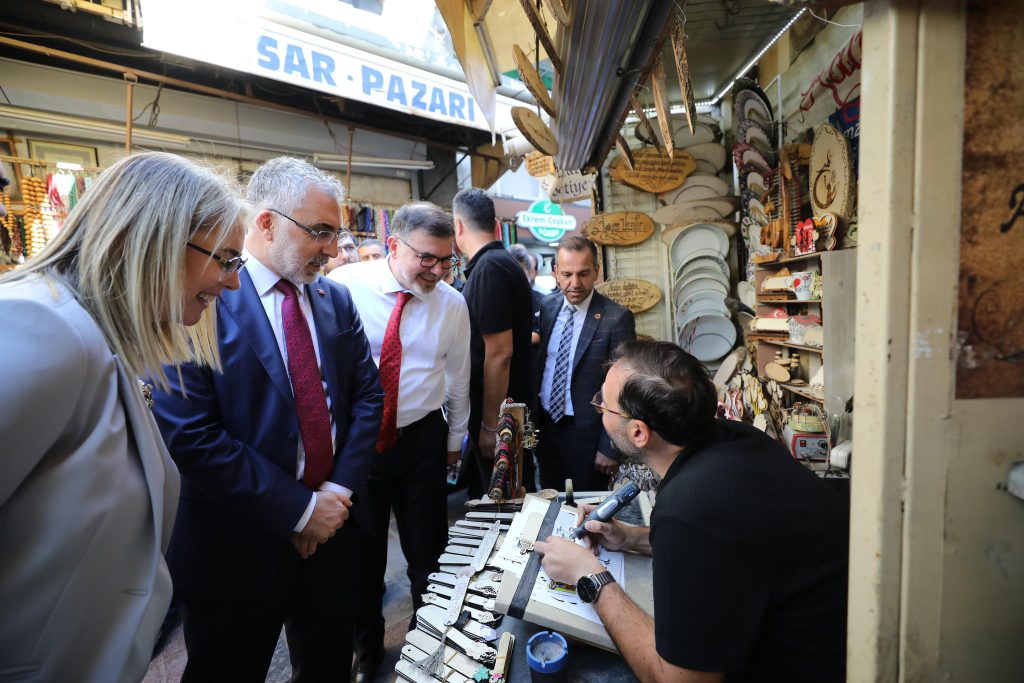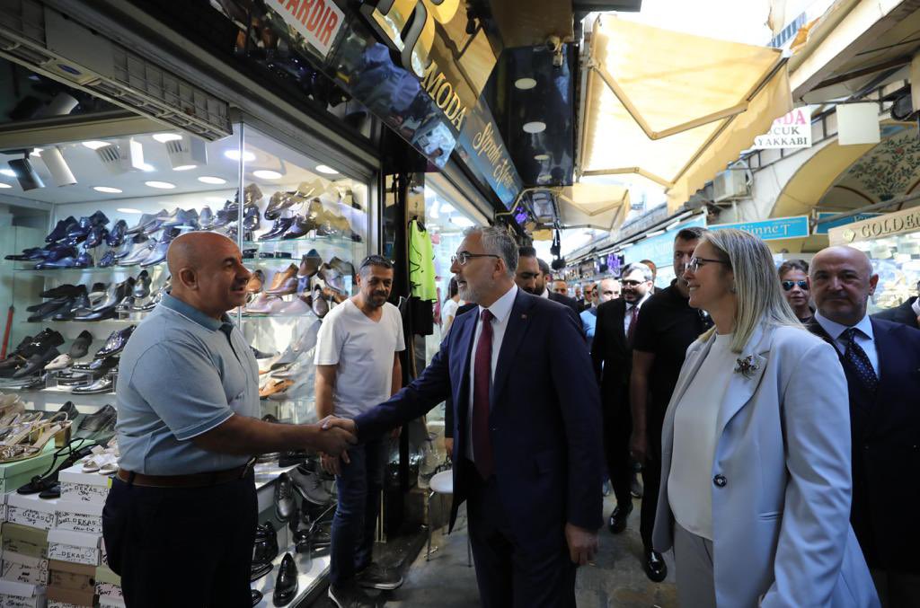 Ardından İzmir programı kapsamında Kemeraltı Çarşısı’nda esnaf ziyareti yapan Bakan Işıkhan, esnaflarla sohbet ederek talep ve sorunlarını dinledi.