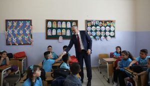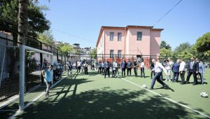 Konak ilçesinde, okuduğu Vali Kazım Paşa İlkokulu’nu da ziyaret eden Bakan Işıkhan, burada öğrenciler tarafından çiçeklerle karşılandı. Işıkhan, öğrencilerle sohbet ettikten sonra okul bahçesindeki halı sahada antrenman yapan çocuklarla bir araya geldi, penaltı atışı yaptı.