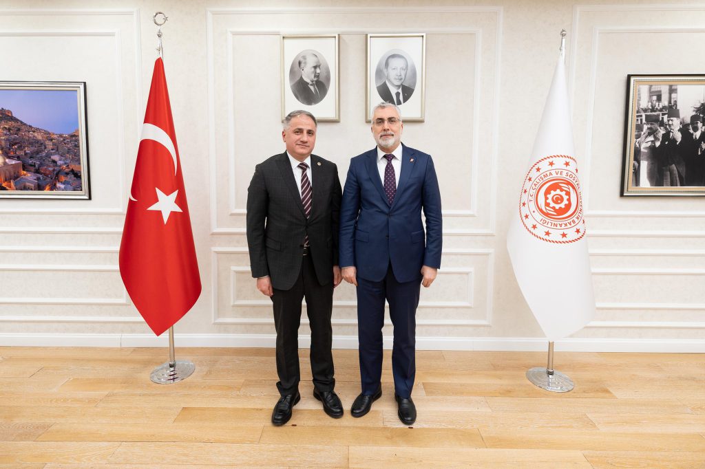 8 Kasım 2023: Çalışma ve Sosyal Güvenlik Bakanı Prof. Dr. Vedat Işıkhan, Büro Memur-Sen Genel Başkanı Yusuf Yazgan’ı Bakanlıkta ağırladı.