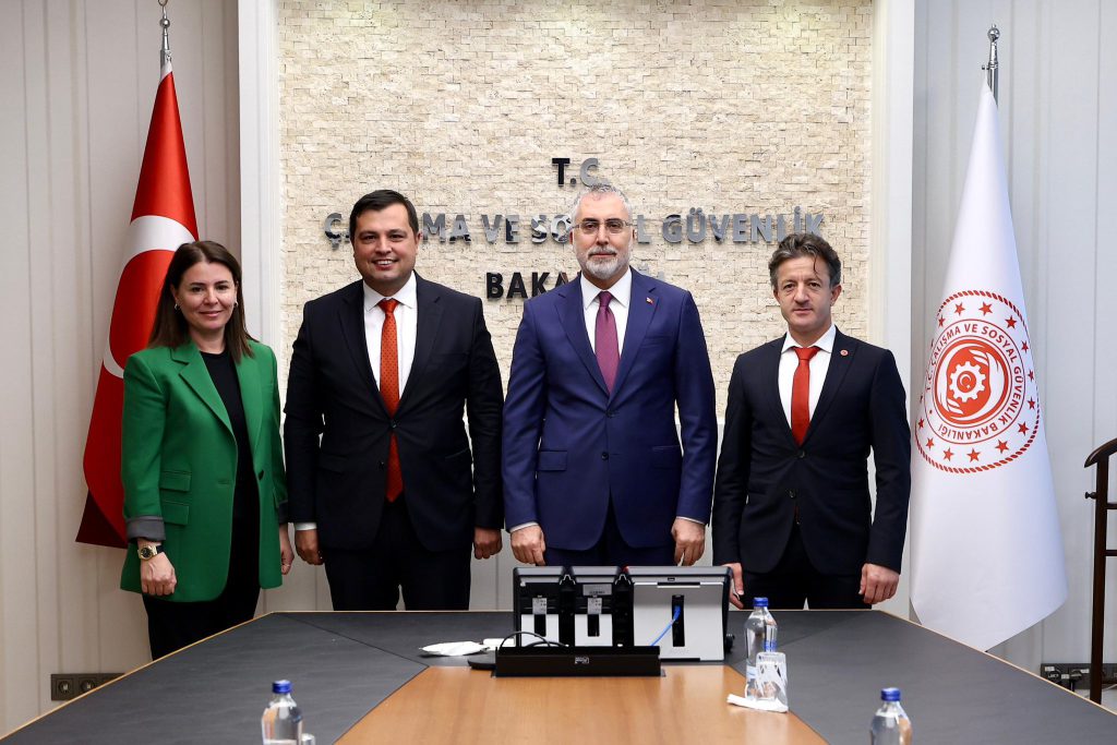 8 Kasım 2023: Çalışma ve Sosyal Güvenlik Bakanı Prof. Dr. Vedat Işıkhan, Türkiye Gıda Sanayii İşverenleri Sendikası Yönetim Kurulu Başkanı İsmail Kaan Sidar ve beraberindeki heyeti Bakanlıkta ağırladı.