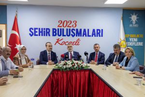 Ülkemizin sanayi ve üretim alanında öncü şehirlerinden olan Kocaelimizde çalışma hayatına dair istişarelerimizi gerçekleştirmek üzere iş insanlarımız, esnafımız, sivil toplum kuruluşlarımızın kıymetli temsilcileriyle bir araya geldik. Türkiye Yüzyılı”nda ülkemizi; sanayiden üretime, ihracattan istihdama her alanda dünyanın en büyük ekonomileri arasına yükselteceğiz.