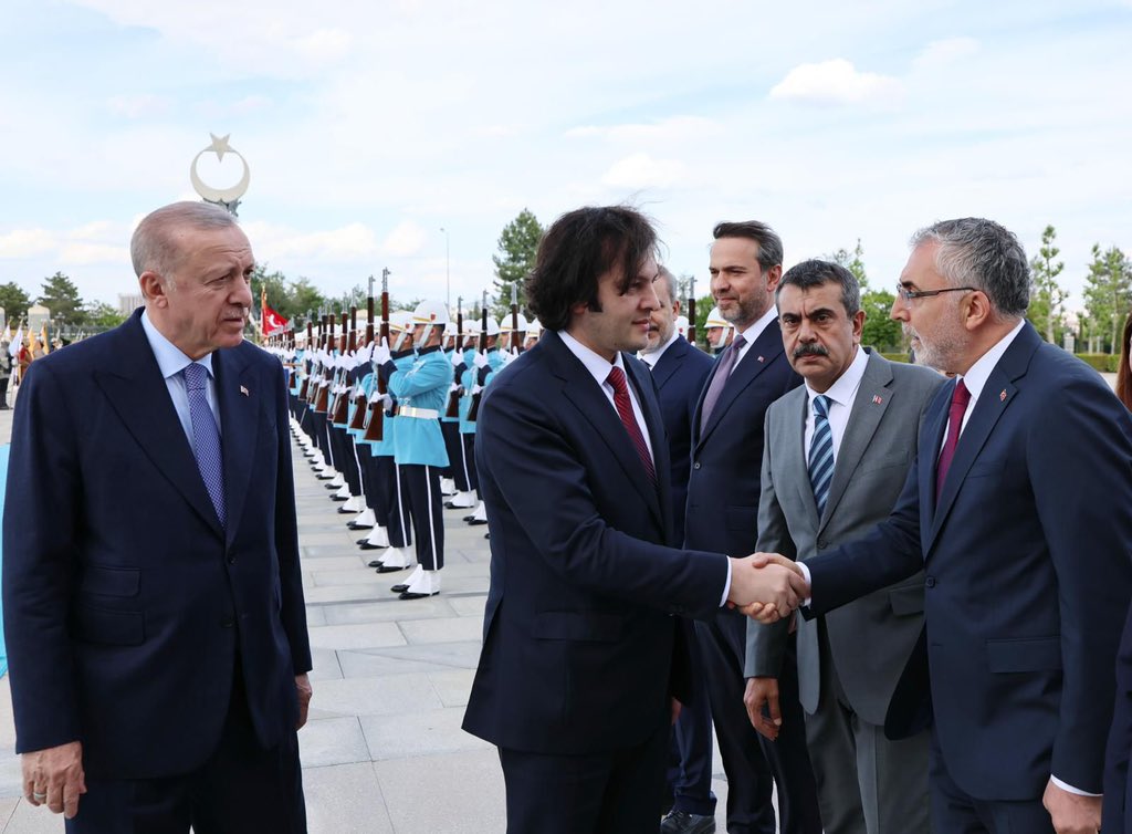 Cumhurbaşkanımız Sayın Recep Tayyip Erdoğan’ın riyasetinde Gürcistan Başbakanı Sayın Irakli Kobakhidze’nin resmî kabulüne iştirak ettik. Kabulün ardından mevkidaşım Sayın Mikheil Sarjveladze ile ikili görüşmeye ve heyetler arası görüşmelere katıldık. Dost ülke Gürcistan ile iş birliği alanlarımızın önümüzdeki dönemde de güçlenerek devam edeceğine inanıyoruz.