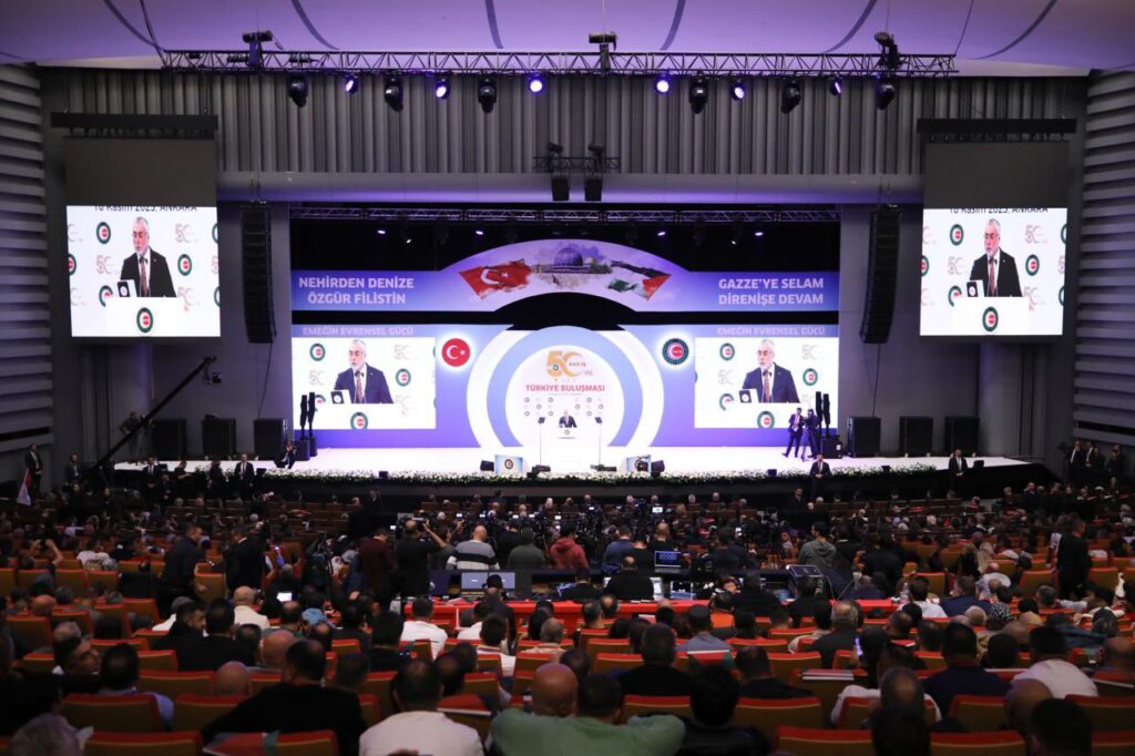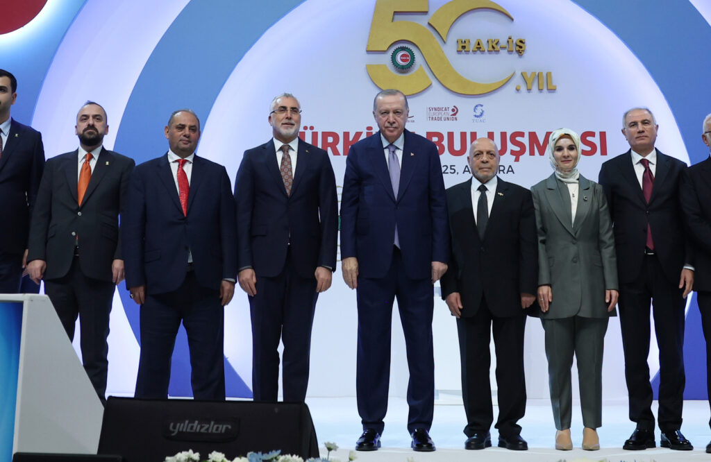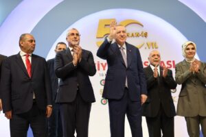 Cumhurbaşkanımız Sayın Recep Tayyip Erdoğan’ın teşrifleriyle Hakiş Konfederasyonu 50. kuruluş yıl dönümü vesilesiyle düzenlenen 1. Türkiye Buluşması Programı’na katıldık. Sayın Cumhurbaşkanımızın liderliğinde sosyal paydaşlarımız olan sendika ve konfederasyonlar ile uzlaşı zemininde çalışmalarımızı sürdürüyoruz. Emeğin, alın terinin ve üretimin değeriyle ülkemizi birlikte büyütmeye devam edeceğiz. Yarım asırdır çalışma hayatımıza ve ülkemize sağladıkları katkılar için tüm HAK-İŞ ailesine gönülden teşekkür ediyorum.