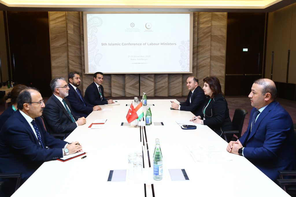 * Beşinci İslam İşbirliği Teşkilatı Çalışma Bakanları Konferansına ev sahipliği yapan Azerbaycan Çalışma ve Halkın Sosyal Koruması Bakanı Kıymetli Gardaşım Sayın Sahil Babayev ile bir araya gelerek, gösterdikleri misafirperverlik dolayısıyla teşekkürlerimizi ve İslam İşbirliği Teşkilatı Çalışma Merkezinin Bakü’de kurulmasından duyduğumuz memnuniyeti ilettik. Sayın Bakanla yaptığımız görüşmede, hem İslam İşbirliği Teşkilatı bünyesinde hem de ülkelerimiz arasında çalışma hayatında yakın işbirliği alanlarının geliştirilmesinin önemini vurguladık. Sosyal güvenlik alanında işbirliğimizin derinleşmesine yönelik konuları istişare ettik.