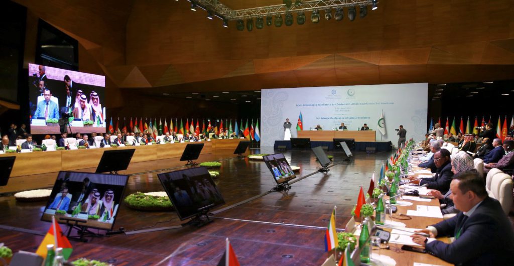 At the Opening Meeting of the General Assembly of the Organization of Islamic Cooperation Labour Center in Baku, where we are here for the Fifth Session of the Organization of Islamic Cooperation (OIC) Labour Ministers’ Conference: We drew attention to the importance of establishing the Labour Center, the newly structured institution of the Organization, in Baku and had the pleasure to share our opinions and suggestions in the fields of strengthening the social development efforts of the member states, work, employment, social protection and human resource development.