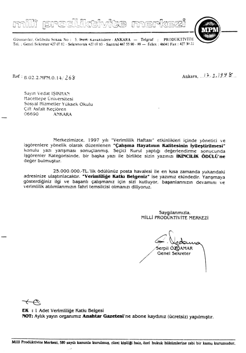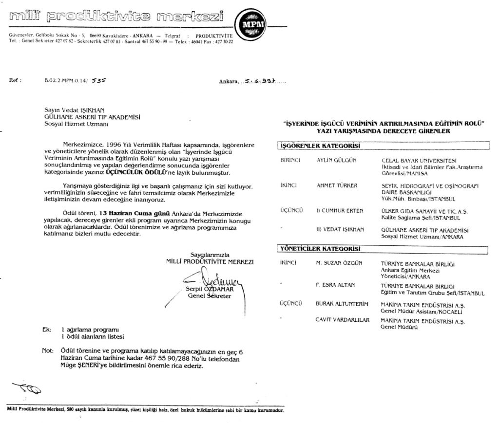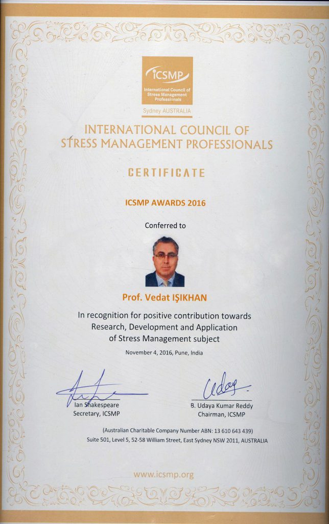 Prof. Dr. Vedat Işıkhan’ın aldığı ulusal ve uluslararası ödüllerden bazıları: